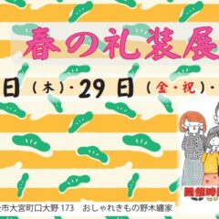※3日、4日は、京都府丹後文化会館で開催されます「坂東玉三郎京丹後特別舞踊公演」のお手伝いと「丹後ちりめん 玉三郎好み 色無地企画」でロビーにて展示販売を行っております。貴重な機会です^^公演チケットもまだあるようなので、野木纏家でも受け付けております。どしどしお申し付けくださいませ。